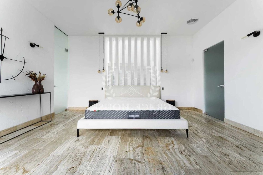 У будинку передбачено простору кухню-вітальню з високою стелею (4 м), головну спальню з власною ванною та гардеробною, дві окремі спальні, кабінет/кімнату відпочинку, два санвузли та низку технічних приміщень. Оселя повністю укомплектована меблями та готова до проживання без додаткових вкладень.