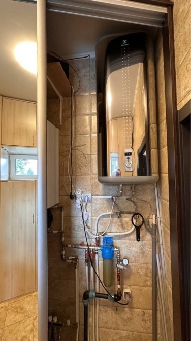 Опалення водяна гребінка під усім будинком, обігрівається котлом протерм-скат. 2-3 кіловати постійної роботи котла вистачає підтримувати температуру 22-24 градуси. В санвузлах-електрична тепла підлога. Котел 9 квт, але зазвичай достатньо 2-3. В сильні морози максимум 4, щоб підтримувати температуру 22-23 градуси.
