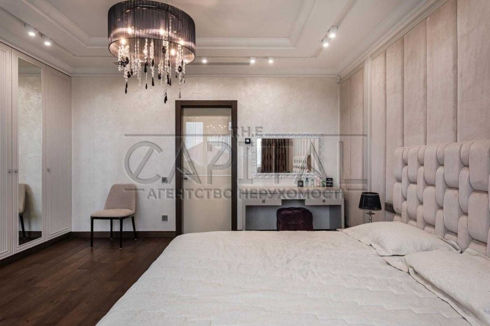 На другому рівні – велика майстер спальня з гардиробом та санвузлом, дві гостьові спальні, велика гардеробна кімната та санвузол.