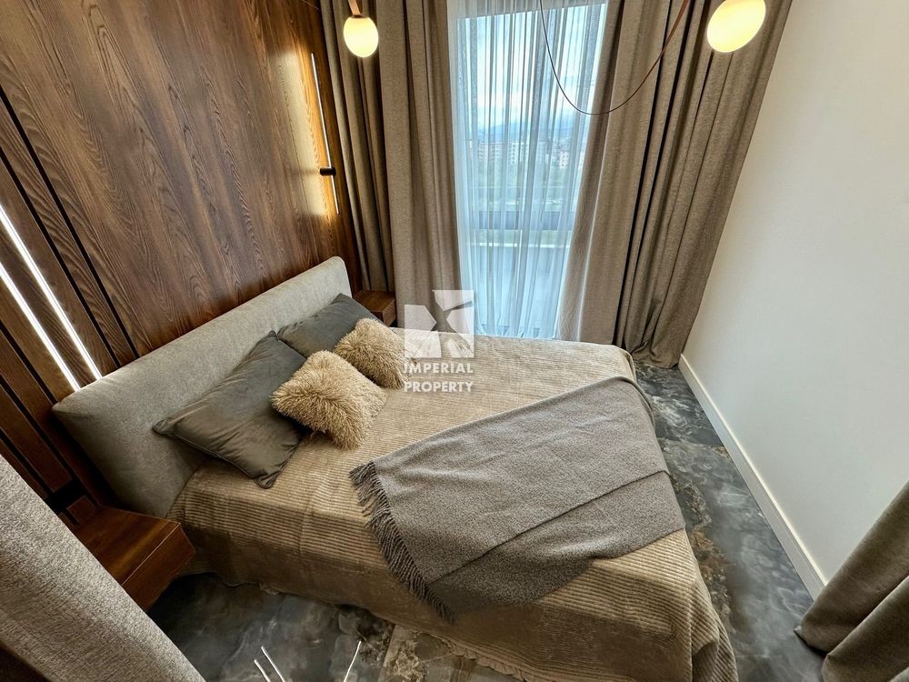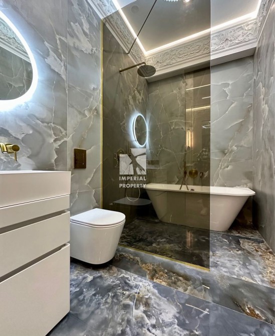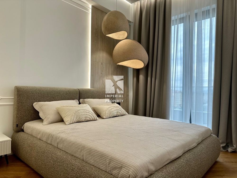 Видова квартира з вишуканим ремонтом має зручне планування і складається з кухні вітальні, 2 спальні кімнати, ванна кімната та окрема гардеробна, яка прихована за дзеркальними дверима висотою 3 м.