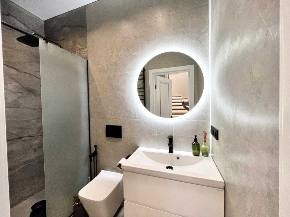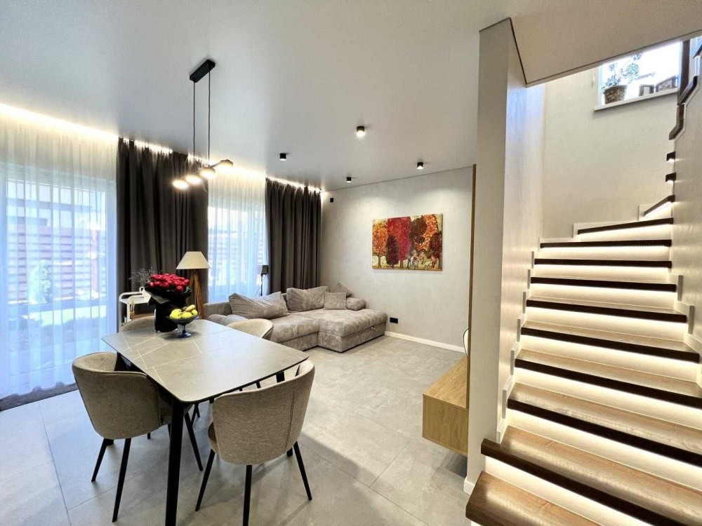 • Дуплекс укомплектований всією необхідною технікою: фільтр для води, пральна та посудомийна машини, варильна поверхня, духова шафа, мікрохвильова піч, холодильник, газовий котел.