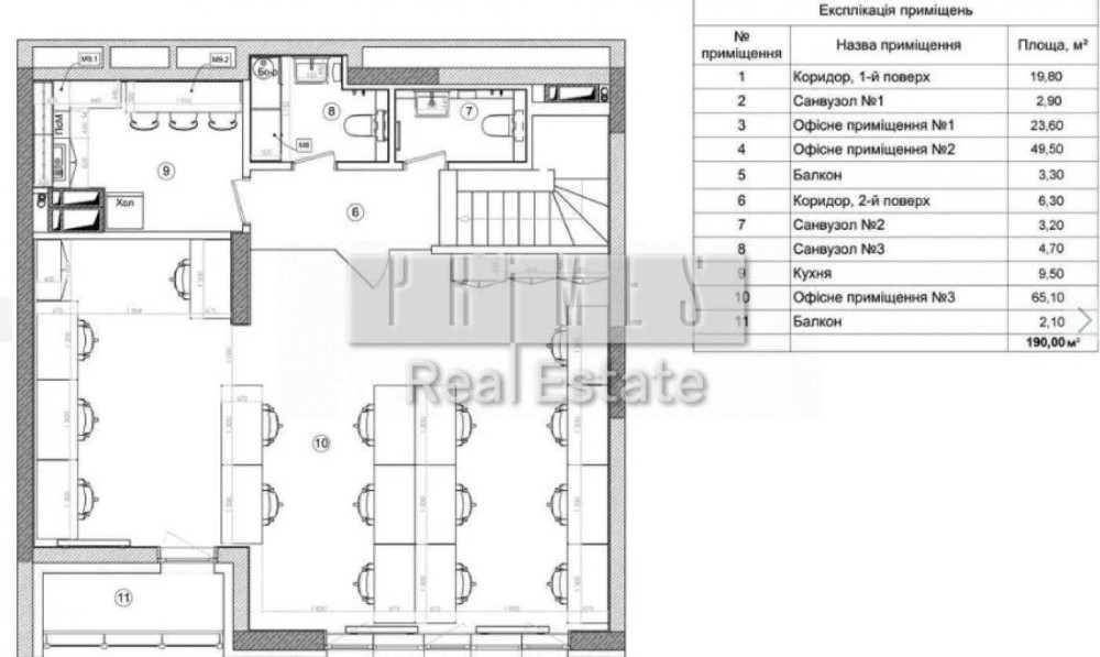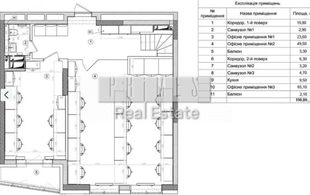 Перше здавання в оренду. Двохрівневий офіс 190 м2. Два великі опенспейси (65,10 м 49,5 м 23,60 м кухня 9,5 м, три санвузли, два балкони).