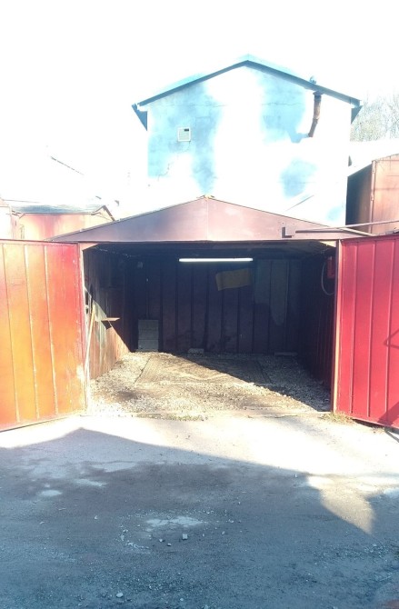 Залізний подвійний гараж з оглядовою ямою.