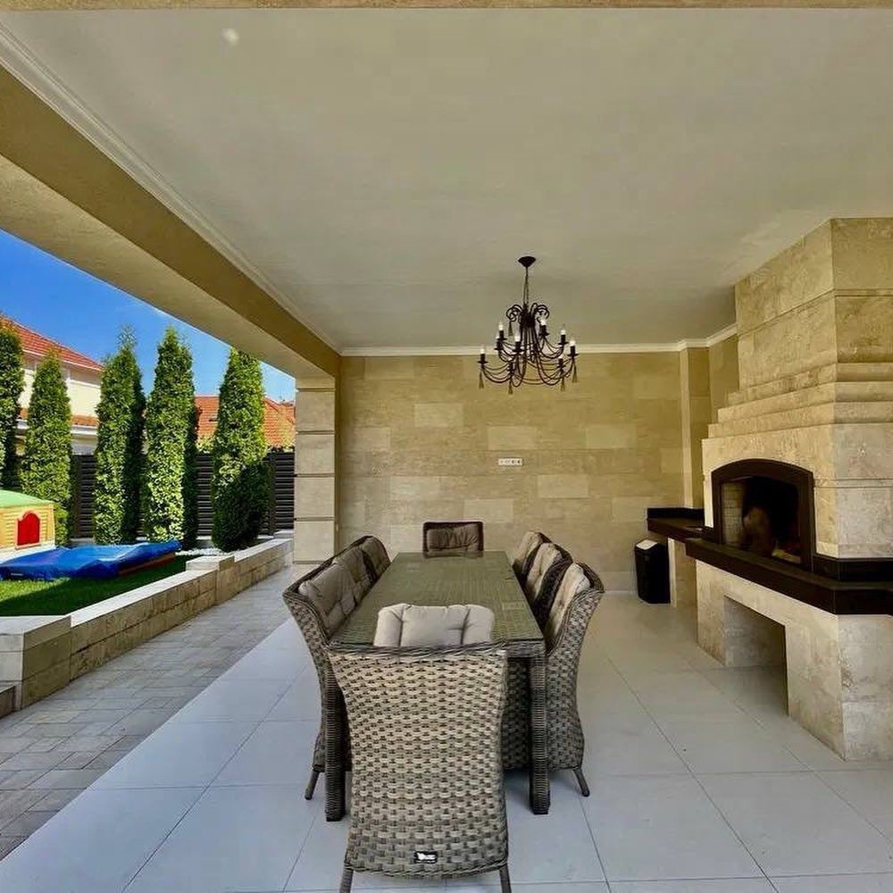 • Комфорт Кондиционер, Ванна, Терраса, Камин, Терраса, Видеонаблюдение, Охраняемая территория, Гараж, Автоматические ворота, Подсобные помещения, Баcсейн
