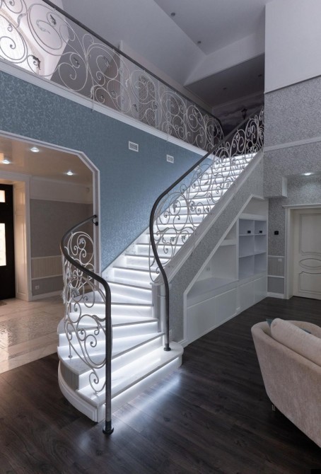 Дуже гарний світлий будинок красиві мармурові сходи з підсвіткою.
