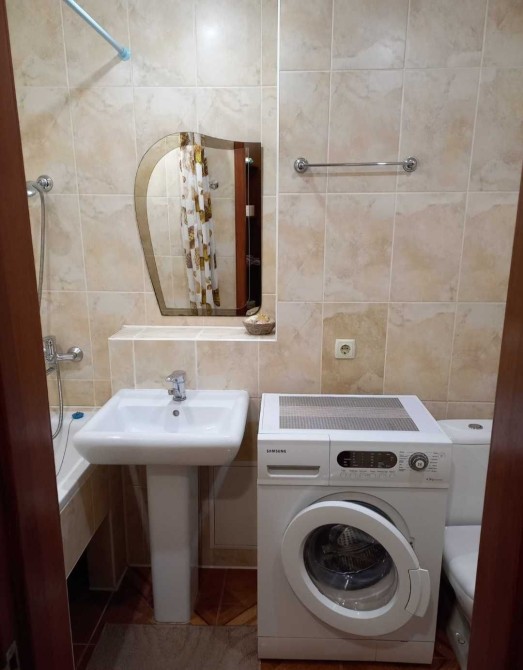 3кімнатна квартира, перебудована у 2кімнатну. Кухня-студія має телевізор, кондіціонер, диван, софу, посудомийну машину, пральну машину, витяжку, духову піч та вихід на балкон. Вікна кухні виходять у двір. Вікна спальні на проспект Миру. В спальні також є кондіціонер та телевізор. Ванна велика, має вуглову ванну та бойлер. Підійде для сімї з 3 людей. Поряд знаходиться бібліотека, магазин, море, кафе, банк та парк. Здається з проживанням і влітку також, без виселення. Деталі за телефоном.