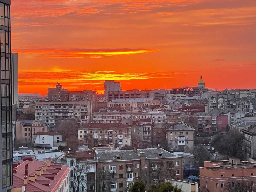 Відкривається прекрасна панорама на центр міста, чудова як зранку при сході сонця так і вечірніми вогнями Києва.