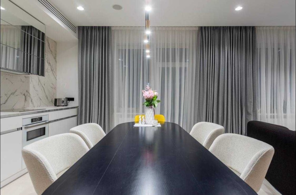 Простора світла кухня-вітальня, обідня зона та комфортабельна зона відпочинку, 2 спальні (майстер-спальня з власним санвузлом) та гостьова чи дитяча кімната.