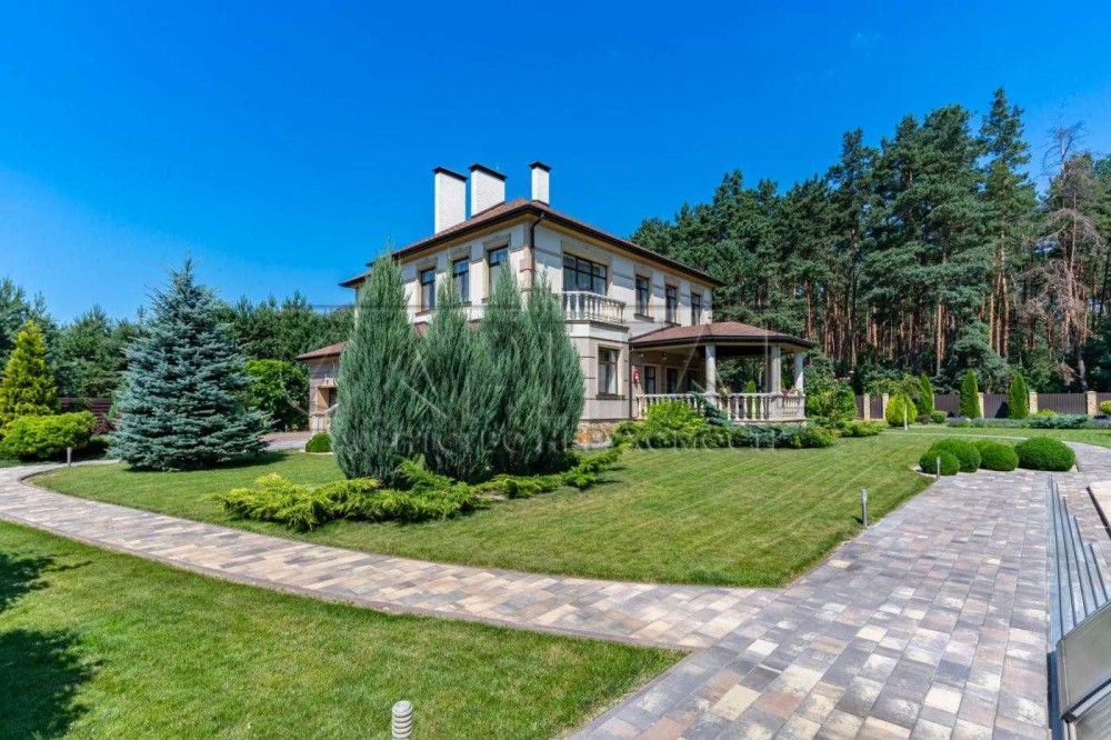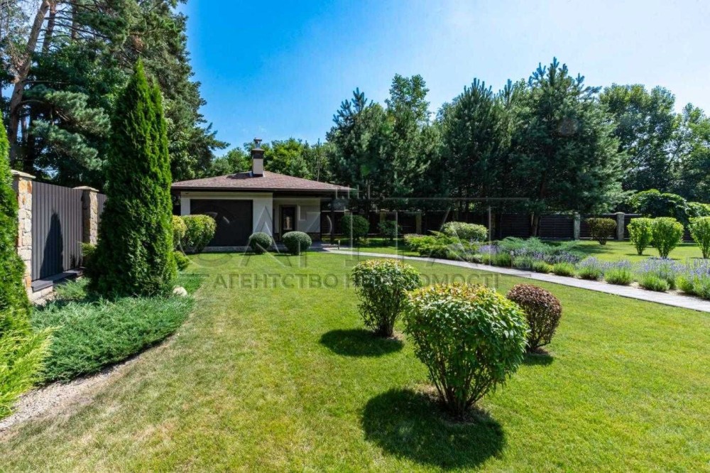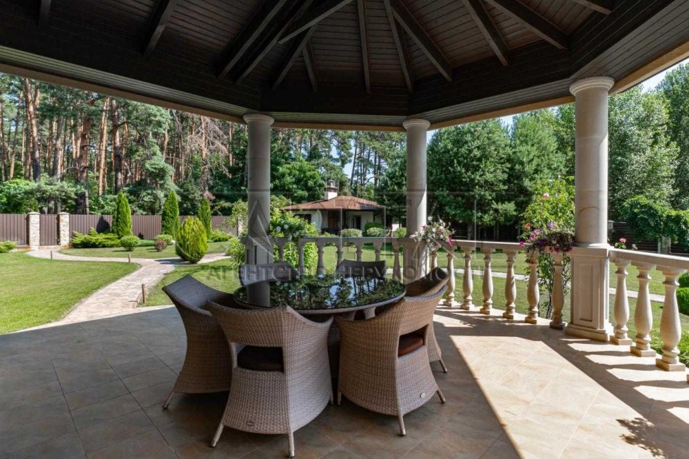 Особливої уваги заслуговує красива тераса, обставлена меблями з ротангу, де можна насолоджуватися свіжим повітрям та чудовими краєвидами лісу. Також на ділянці облаштована зона барбекю, ідеальна для літніх вечорів. Ландшафтний дизайн ділянки виконаний на високому рівні, створюючи гармонійне та приємне оточення. За садом доглядає професійний садівник.