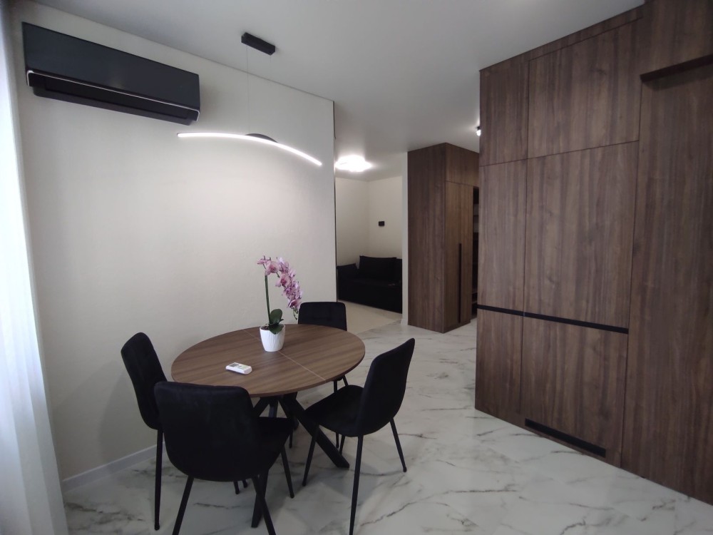 В квартирі зроблений якісний дизайнерський ремонт, є гарне розташування на зони, світла та тепла квартира.