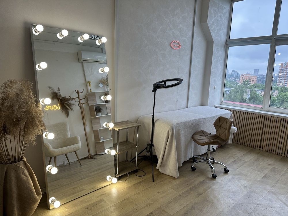Оренда кабінету за адресою вул.Тоболькая 42, (ст.м. Ботанічний сад/23 серпня) 6 поверх из 6, в кабінеті є кушетка, стілець майстра, візок, лампа, велике дзеркало з лампами, шафа, стелаж, крісло, кондиціонер.