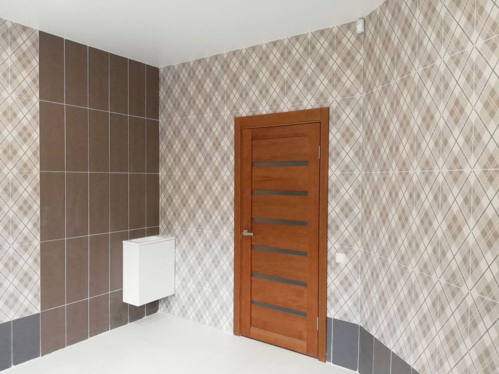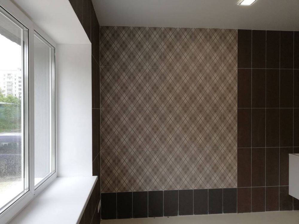 - всі стіни та підлога виконанні плиткою,
