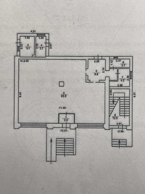 1. Торгове фасадне приміщення (магазин) загальною площею 112,5 кв.м. Площа торгового залу – 88 кв.м., площа підсобних приміщень – 32,5 кв.м. Приміщення знаходяться на 1-му поверсі двоповерхової будівлі та має окремий вхід.