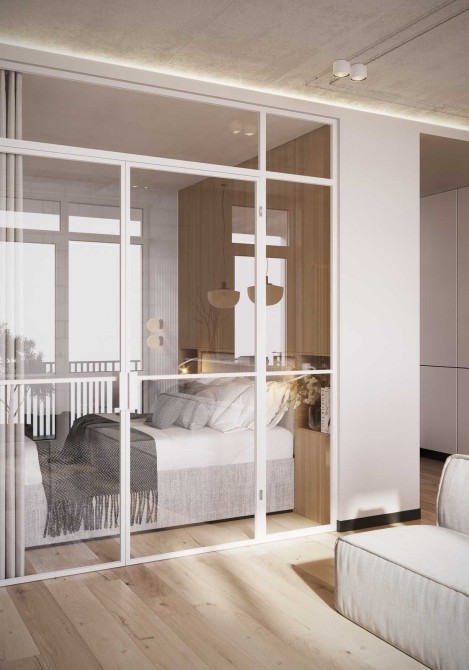 Зспальні та кухні вихід на велику лоджію з панорамними вікнами.