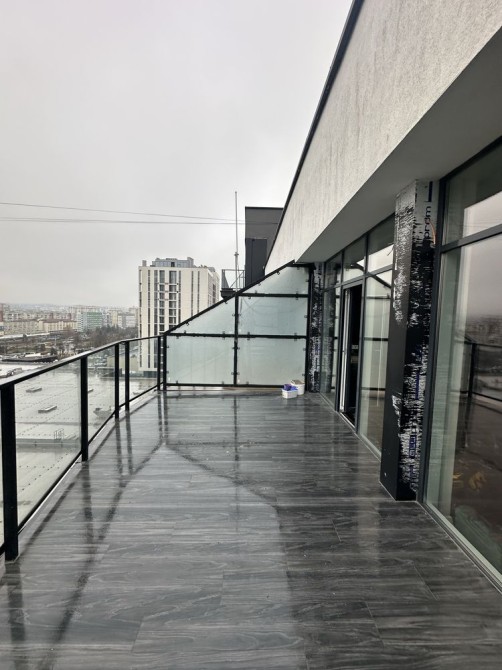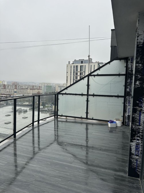 • Величезна тераса — простора, відкрита, зі скляними поручнями та панорамою району.