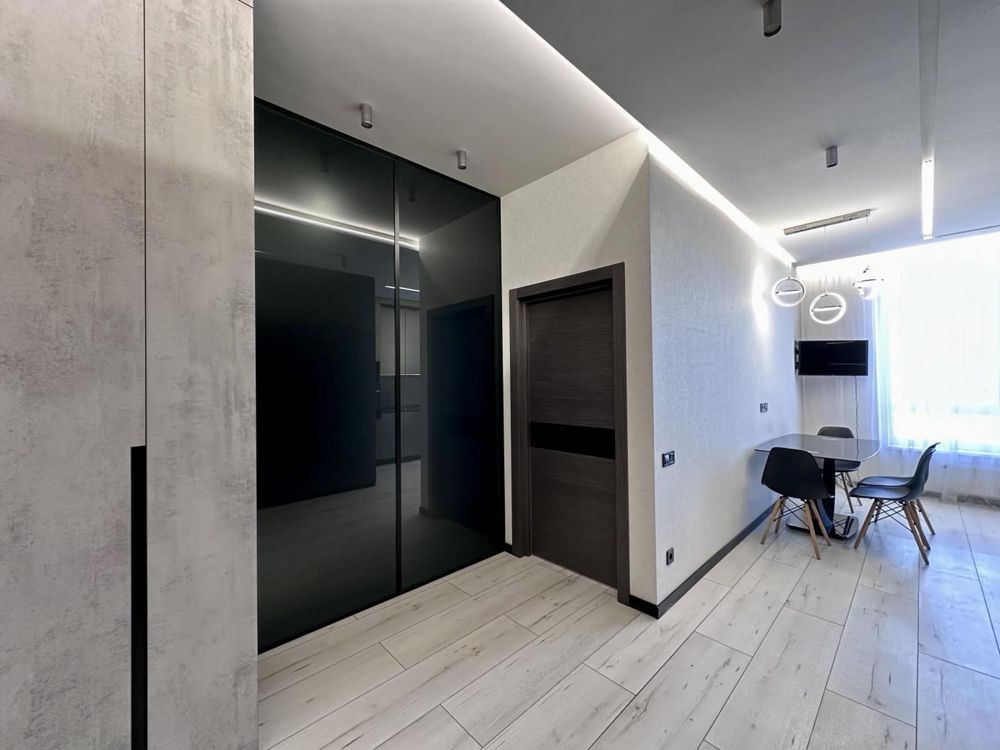 Дизайнерская 1-комнатная квартира (52 м2) расположена на 12/24 этаже.