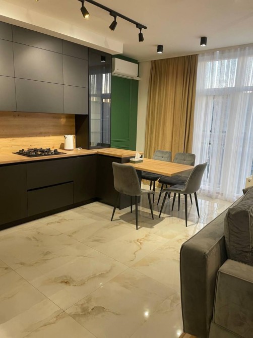 Квартира повністю укомплектована всіма необхідними меблями та побутовою технікою — готова до комфортного проживання без додаткових витрат. На кожному поверсі є санвузол, а в зонах з плиткою облаштований підігрів підлоги. Простора кухня-вітальня площею 30 м² створює відчуття затишку та свободи. На другому рівні — дві ізольовані кімнати.