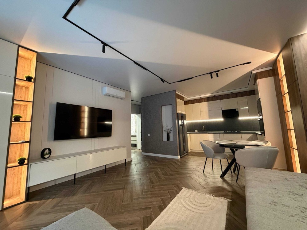 • Освітлення: сучасні трекові системи та контурна підсвітка стелі.