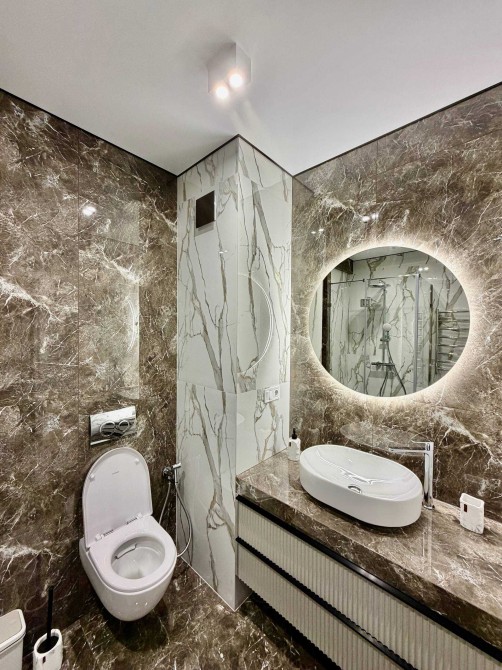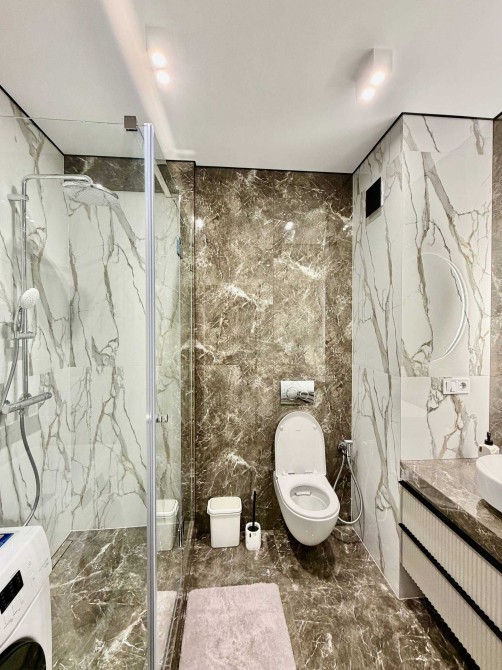 • Санвузол: оздоблення широкоформатним керамогранітом, душова зона, гігієнічний душ, пральна машина.