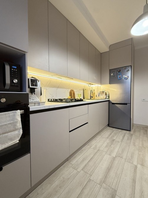 Дві кімнати, кухня, окремий санвузол, гардеробна кімната, оснащена всією побутовою технікою: посудомийна машина Bosh, пральна та сушильна машина, кавоварка, духова шафа та мікрохвильова, телевізор Samsung