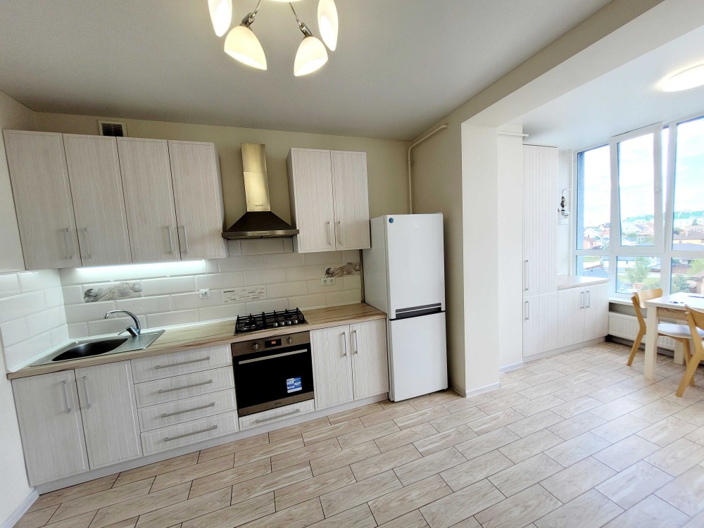 Оренда стильної 1 к кв з кухнею студією в новому будинку ЖК "Файна Таун" в Шевченківському районі, вул. Салютна, 2 Квартира 43 м2 , розташована на четвертому поверсі та складається з передпокою, спальні, великої кухні -студії та санвузла. Вікна квартири виходять в двір. Облаштована всіма необхідними меблями з екологічно чистої деревини та оснащена побутовою технікою: телевізор Samsung Smart 43, кондиціонери в кухні та кімнаті, плита індукційна, вбудований холодильник, духова шафа з функцією мікрохвильової печі, пральна машина з сушаркою. В кухні та ванній кімнаті тепла підлога, високошвидкісний інтернет. ЖК "Файна Таун" це: закрита територія з входом по картці, цілодобова охорона, відеоспостереження, паркінг, підземні контейнери для сміття, зарядні станції для електромобілів та лавки з інтегрованими батареями для підзарядки девайсів, розумне освітлення, яке підлаштовується під час доби та ще багато чого для того, щоб жити з комфортом й ні в чому себе не обмежувати) розповім при перегляді. Зручне транспортне сполучення та розвинута інфраструктура: магазини,спортивні та пішохідні зони ,зона барбекю, ресторани та кафе. Квартира, в якій поєднані комфорт та затишок, шукає своїх порядних орендарів молоду пару або одну людину без дітей та тварин. Перша оренда, квартира вільна.