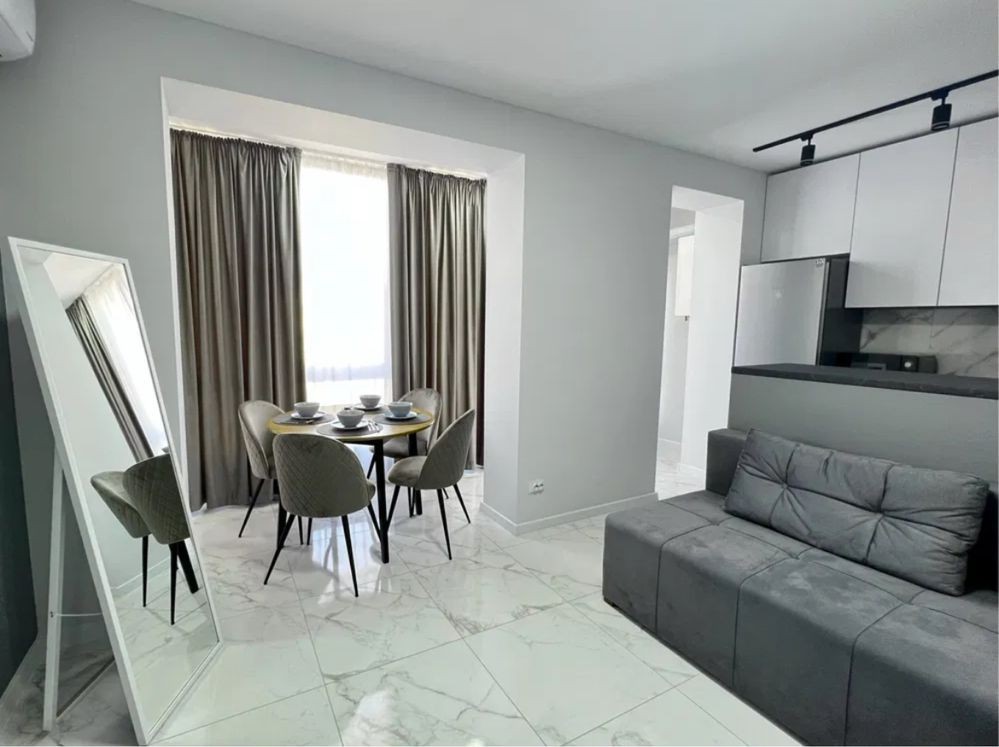 Ексклюзивне планування, 11 поверх першої черги з панорамним краєвидом. Квартира з новим сучасним ремонтом та повністю укомплектована всім необхідним для комфортного проживання: зручне двоспальне ліжко, розкладний диван, містка шафа, кондиціонер, велика лоджія, а також повний набір техніки та посуду — можна заїжджати одразу.