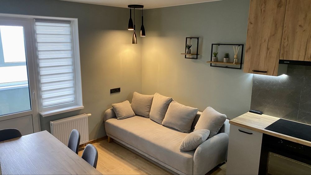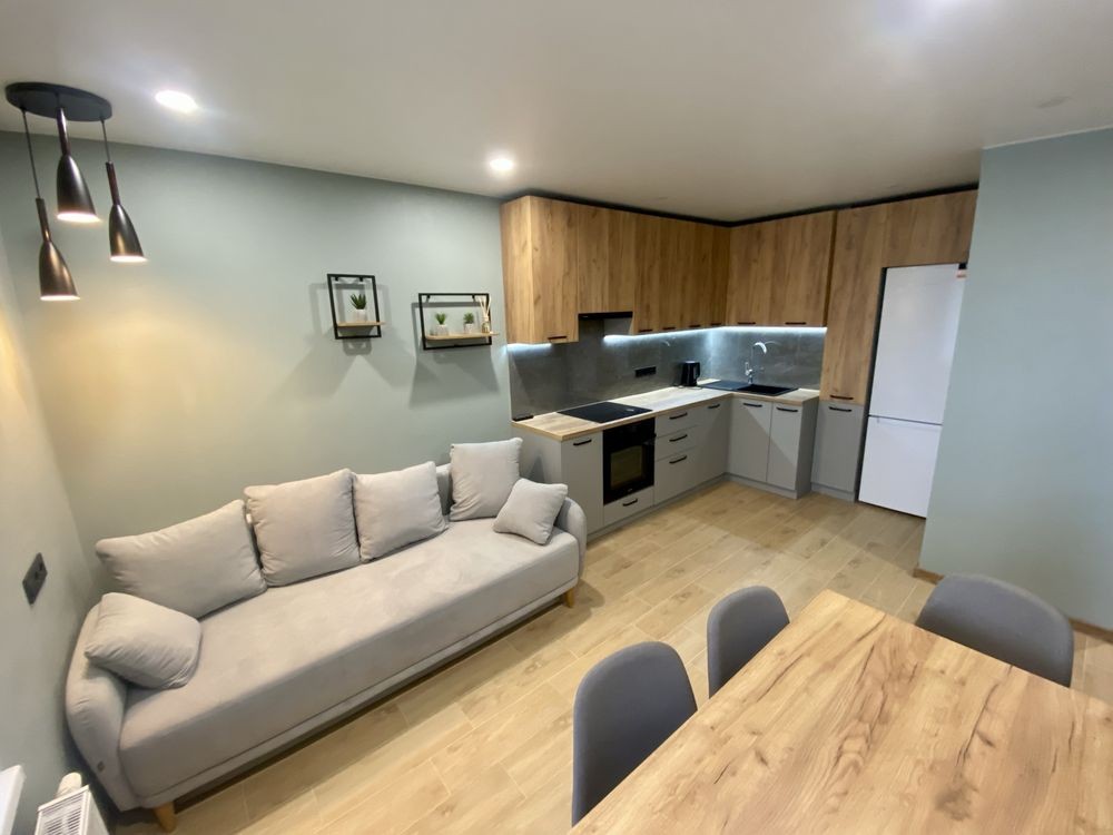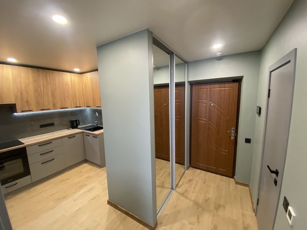 Оренда стильної 1 к кв з кухнею студією в новому будинку ЖК "Файна Таун" в Шевченківському районі, вул. Салютна, 2 Квартира 43 м2 , розташована на четвертому поверсі та складається з передпокою, спальні, великої кухні -студії та санвузла. Вікна квартири виходять в двір. Облаштована всіма необхідними меблями з екологічно чистої деревини та оснащена побутовою технікою: телевізор Samsung Smart 43, кондиціонери в кухні та кімнаті, плита індукційна, вбудований холодильник, духова шафа з функцією мікрохвильової печі, пральна машина з сушаркою. В кухні та ванній кімнаті тепла підлога, високошвидкісний інтернет. ЖК "Файна Таун" це: закрита територія з входом по картці, цілодобова охорона, відеоспостереження, паркінг, підземні контейнери для сміття, зарядні станції для електромобілів та лавки з інтегрованими батареями для підзарядки девайсів, розумне освітлення, яке підлаштовується під час доби та ще багато чого для того, щоб жити з комфортом й ні в чому себе не обмежувати) розповім при перегляді. Зручне транспортне сполучення та розвинута інфраструктура: магазини,спортивні та пішохідні зони ,зона барбекю, ресторани та кафе. Квартира, в якій поєднані комфорт та затишок, шукає своїх порядних орендарів молоду пару або одну людину без дітей та тварин. Перша оренда, квартира вільна.