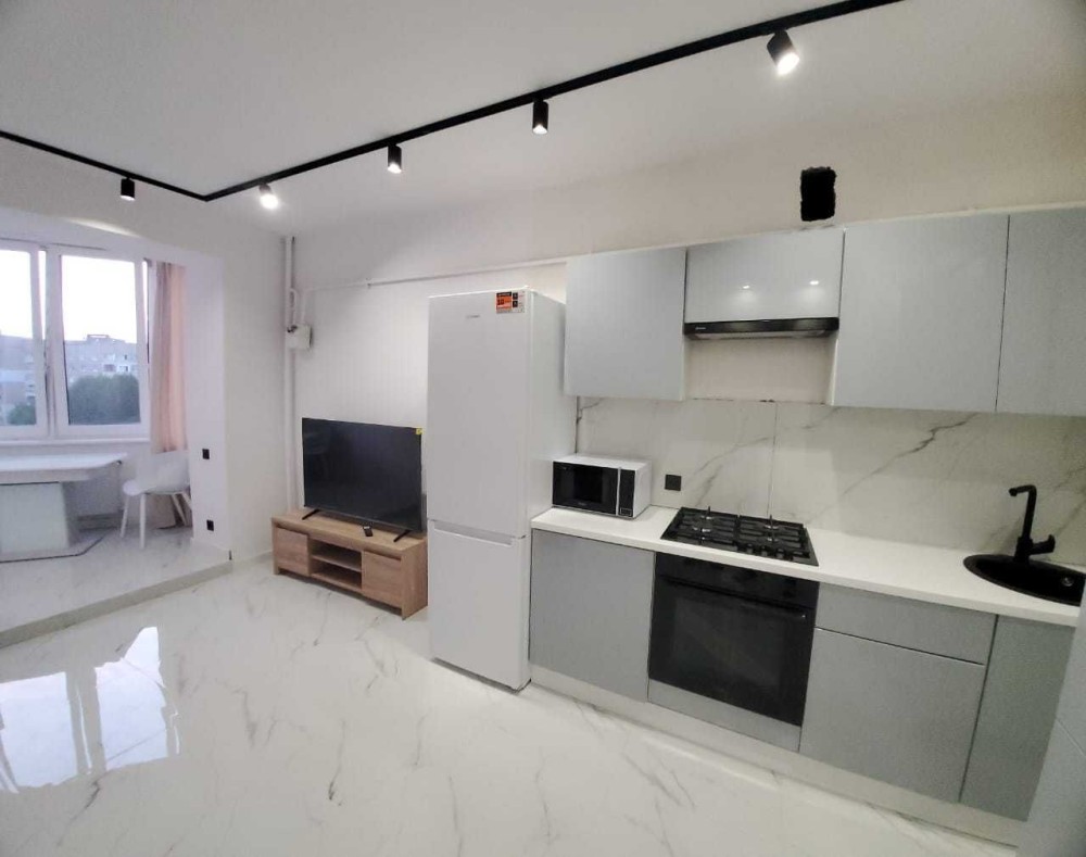 Ізольована спальня та кухня-студіо. Квартира світла, є всі необхідні меблі та побутова техніка, індивідуальне опалення. 5/9 пов.