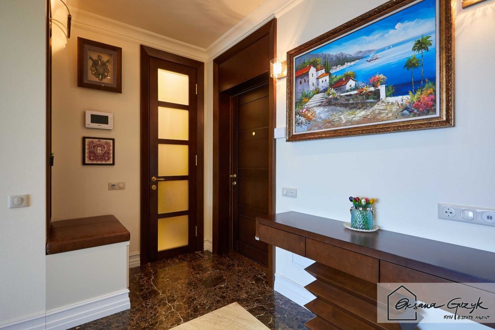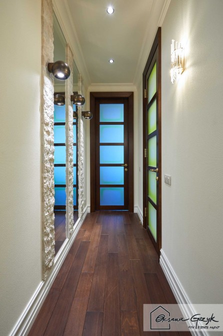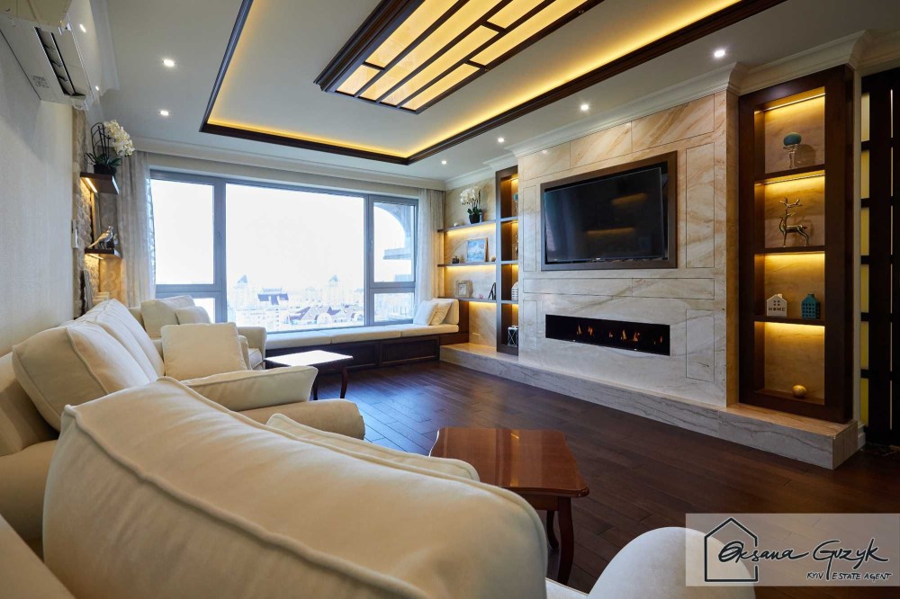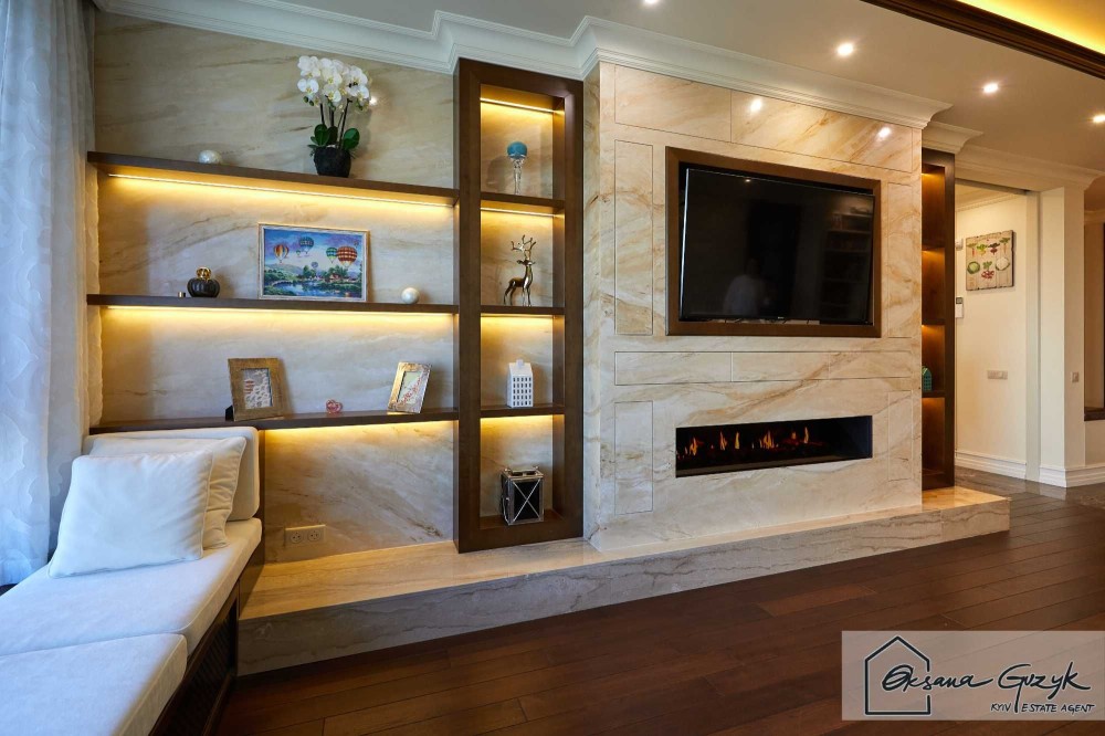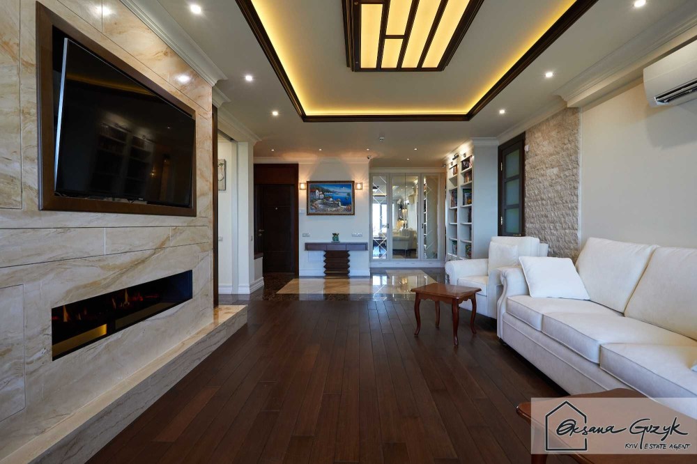 По плануванню, як тільки входите у квартиру – одразу розташована простора, дуже світла вітальня з каміном, а далі окрема кухня на якій навіть якщо Ви не любите готувати – Вам захочеться творити кулінарні шедеври, оскільки для цього налаштує інтер’єр, посуд, техніка і навіть освітлення. Квартира мега комфортна, оскільки власник робив дизайн для себе та використав тільки натуральне дерево та мармур, тому для довгострокової оренди Вам буде затишно і приємно користуватися.