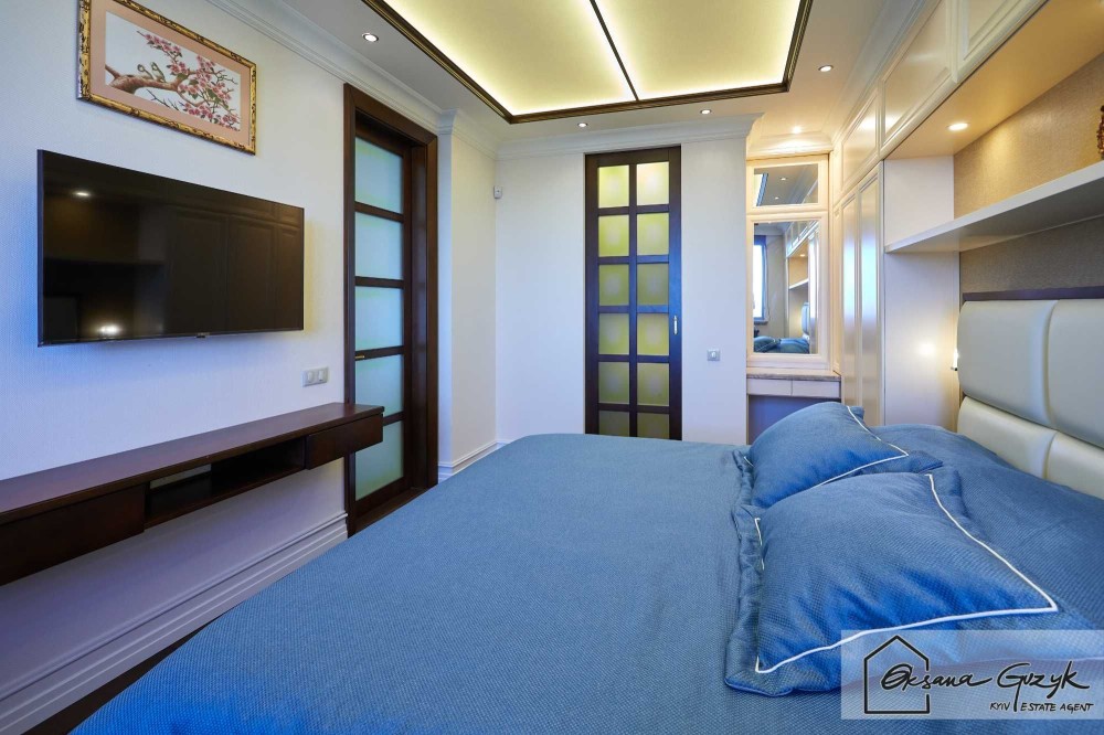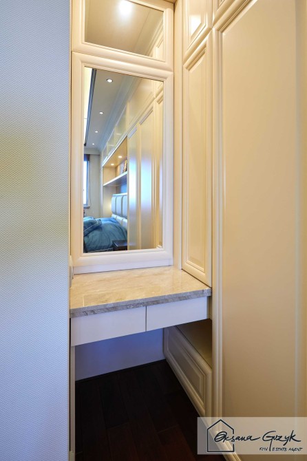 Далі по квартирі простора спальня з гардеробною кімнатою і ще одна спальня. Також у квартирі два санвузли – один гостьовий і другий з ванною-джакузі.