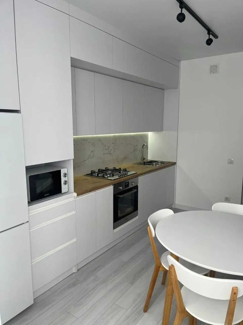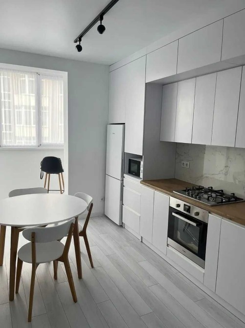 У квартирі простора кухня-студія з усією необхідною технікою та меблями. Наявні : газова варильна поверхня, духова шафа, холодильник, пральна машина. Кухня має обідню зону , також велику сонячну лоджію, де можна насолоджуватися краєвидами улюбленого міста.