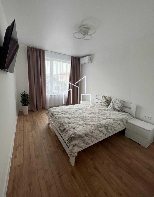 Квартира складається зі спальної кімнати з великим вікном, окремого гардероба, кухні, ванної кімнати з ванною та балкона.Є ліфт. Сонячна сторона тепла, світла й затишна.