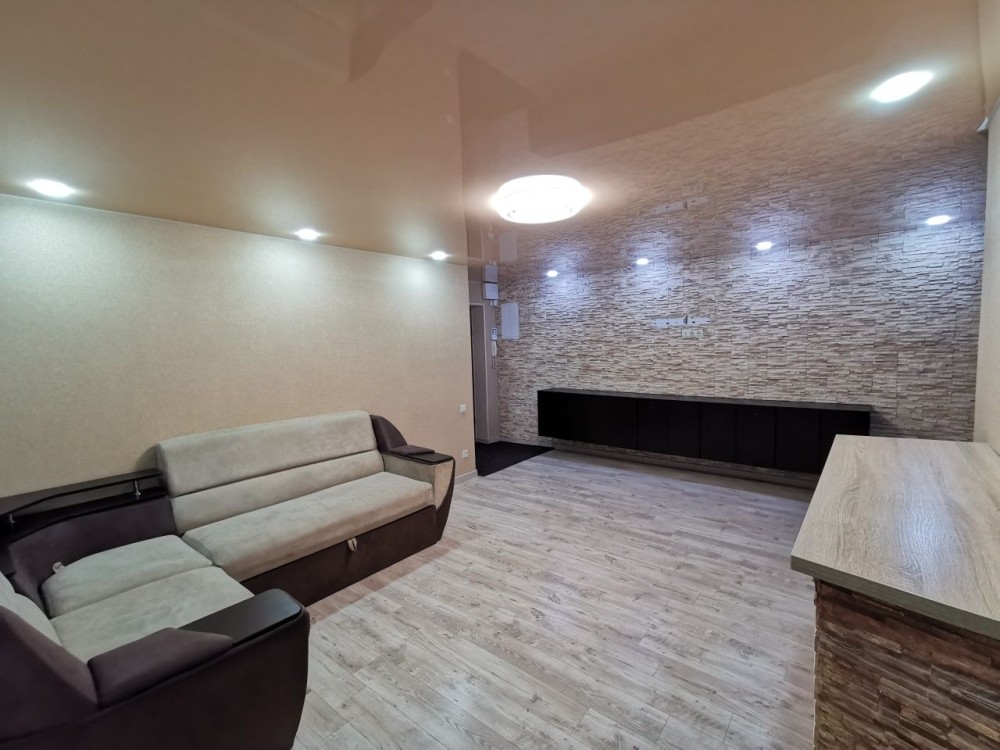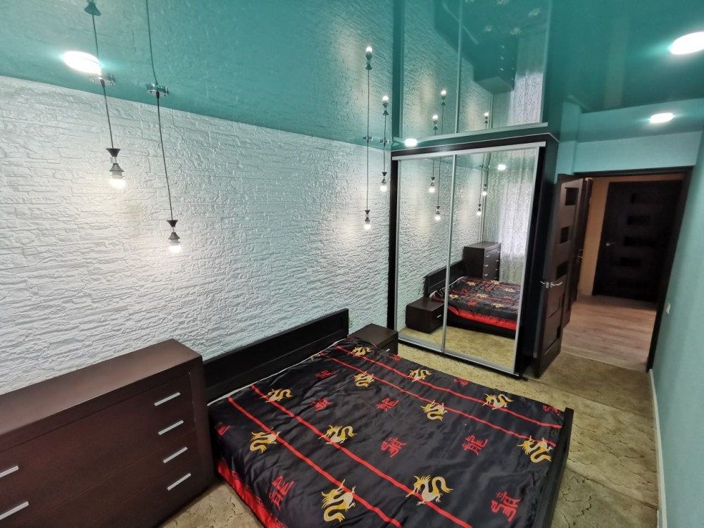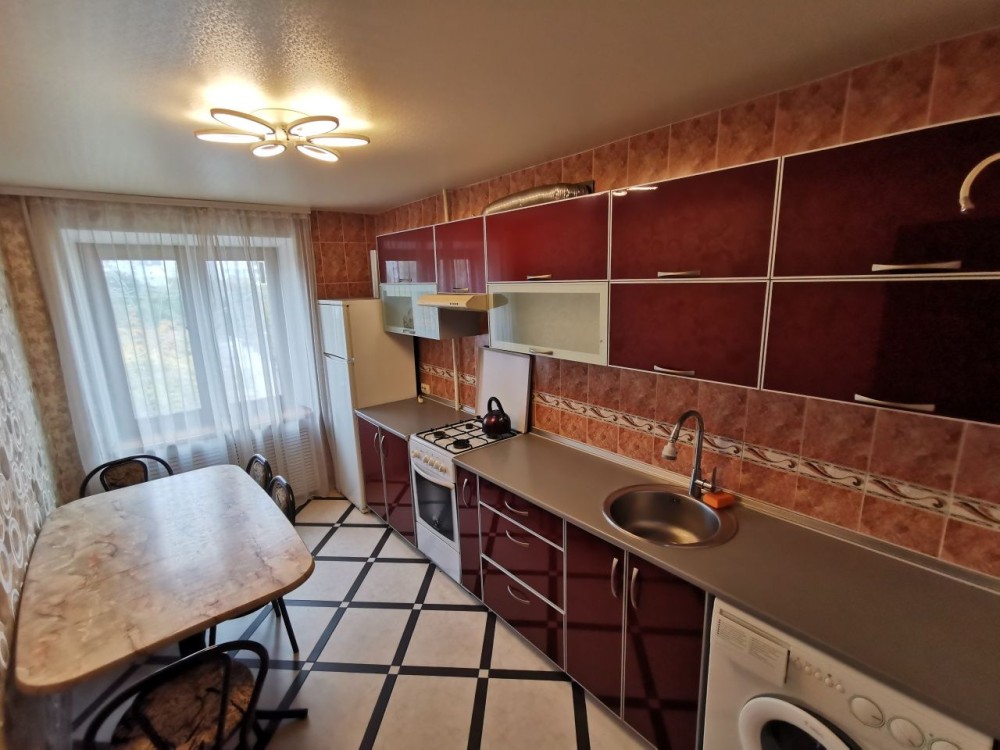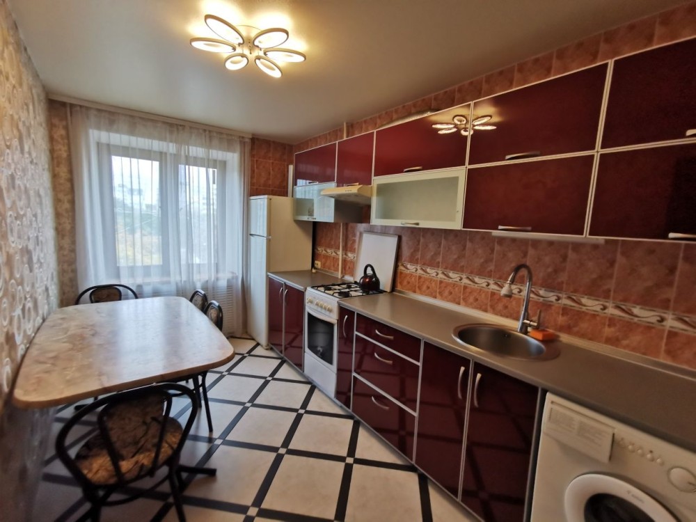 Квартира з двома заскленими балконами, великий кутовий диван в залі, двоспальне ліжко з ортопедичним матрацем, пральна машинка, холодильник, бойлер, кондиціонер, сигналізація, велика шафа купе, доглянута та простора