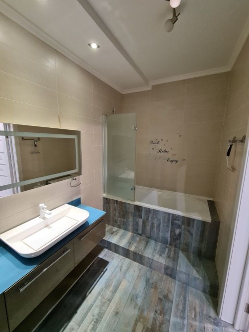 Велика кухня-студія, дитяча кімната, кабінет і спальня. Квартира повністю укомплектована меблями та побутовою технікою, вбудована кухня, гардеробна кімната, два сан-вузла, пральня посудомийна машини. Три кондиціонери, велика лоджія з диваном.