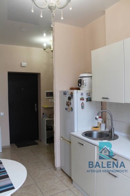 Загальна площа 27 кв.м., житлова 15 кв.м., кухня 10 кв.м., є панорамні вікна, суміжний санвузол з ванною. 2 поверх 3-поверхового будинку.