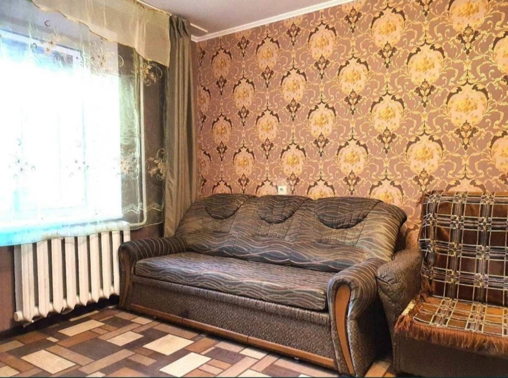 Є вся необхідна мебель: ліжко, розкладний диван, шафа, стіл, стільчики.