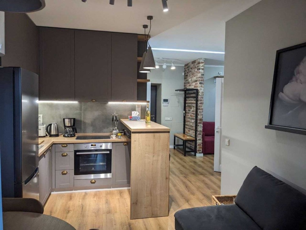 У квартирі зроблене перепланування, завдяки чому в ній є окрема світла спальня, кухня-вітальня, окрема гардеробна кімната, релакс-зона з розкладним диваном (двоспальне місце), яка знаходиться за двома стінами (тобто є велике спальне місце, яке відповідає правилу двох стін). Є закритий балкон з батареєю та розкладним диванчиком, а також відкритий балкон. В спальні ліжко 2х2 з великим пружним матрацом, там також є робоча зона. У гардеробній кімнаті дзеркало у повний зріст. В квартирі є пральна машина, сушильна машина (обидві electrolux), посудомийна машина bosch, холодильник samsung, електричні варильна поверхня та духова шафа (теж обидві electrolux), раковина та витяжка franke, смарт-телевізор samsung, бойлер gorenje, кондиціонер, штори блекаут, пожежна сигналізація та сигналізація від поліції охорони. Ремонт зроблено за власним проектом, з дизайнером, в стилі лофт. В квартирі є подушки, пледи, електрочайник та кавомашина, посуд, бокали, кухонне приладдя (каструлі, сковорідки, салатниці, дошки і багато іншого). Квартира здавалася в оренду один раз, раніше в ній жила тільки я (власниця). Опалення централізоване, є терморегулятор, індивідуальні лічильники, автоматична передача усіх показників крім води. Вартість 28 000 гривень в місяць плюс комунальні платежі, завдаток.
