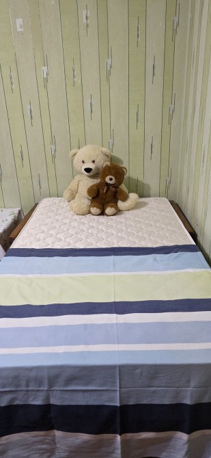 У більшій кімнаті є меблева стінка з сервантом та вмісткою шафою, стіл, стільці, крісла, журнальний столик, ліжко (розкладний диван), з новим матрасом. Розмір спального місця 120х200 (півтораспальне).