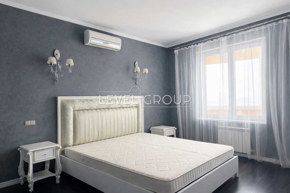 Пропонується в оренду простора квартира площею 76 м² з дизайнерським ремонтом. Розташована на 21 поверсі з 23, з гарним панорамним видом на Київ та висотою стелі 3 метри, що створює відчуття простору й світла.