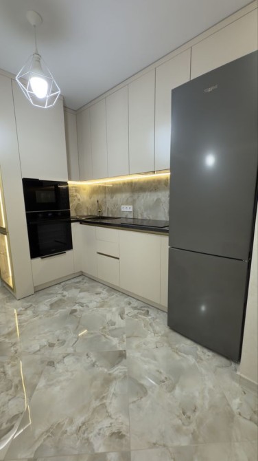 Квартира укомплектована надійною побутовою технікою: духова шафа, холодильник, мікрохвильова піч, кондиціонер (на тепло й охолодження), пральна машина.