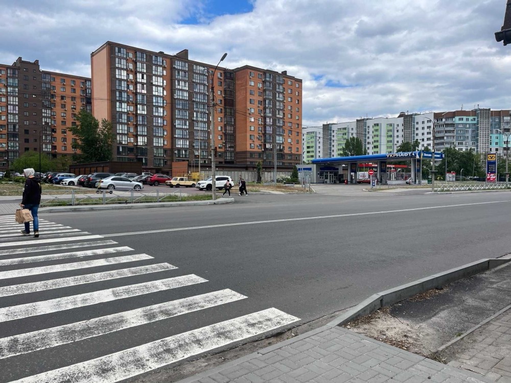 На зупинці громадського траспорту, житловий масив.