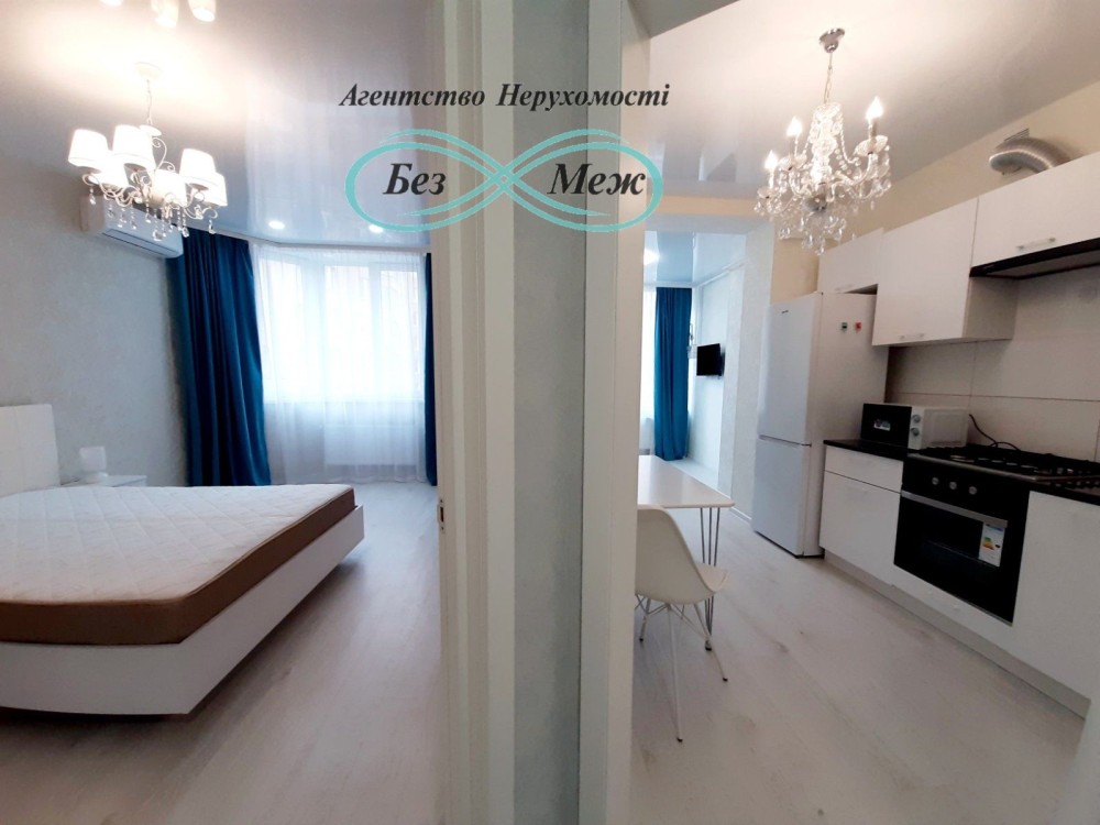 Оренда стильної 1 к кв з кухнею студією в новому будинку ЖК "Файна Таун" в Шевченківському районі, вул. Салютна, 2 Квартира 43 м2 , розташована на четвертому поверсі та складається з передпокою, спальні, великої кухні -студії та санвузла. Вікна квартири виходять в двір. Облаштована всіма необхідними меблями з екологічно чистої деревини та оснащена побутовою технікою: телевізор Samsung Smart 43, кондиціонери в кухні та кімнаті, плита індукційна, вбудований холодильник, духова шафа з функцією мікрохвильової печі, пральна машина з сушаркою. В кухні та ванній кімнаті тепла підлога, високошвидкісний інтернет. ЖК "Файна Таун" це: закрита територія з входом по картці, цілодобова охорона, відеоспостереження, паркінг, підземні контейнери для сміття, зарядні станції для електромобілів та лавки з інтегрованими батареями для підзарядки девайсів, розумне освітлення, яке підлаштовується під час доби та ще багато чого для того, щоб жити з комфортом й ні в чому себе не обмежувати) розповім при перегляді. Зручне транспортне сполучення та розвинута інфраструктура: магазини,спортивні та пішохідні зони ,зона барбекю, ресторани та кафе. Квартира, в якій поєднані комфорт та затишок, шукає своїх порядних орендарів молоду пару або одну людину без дітей та тварин. Перша оренда, квартира вільна.