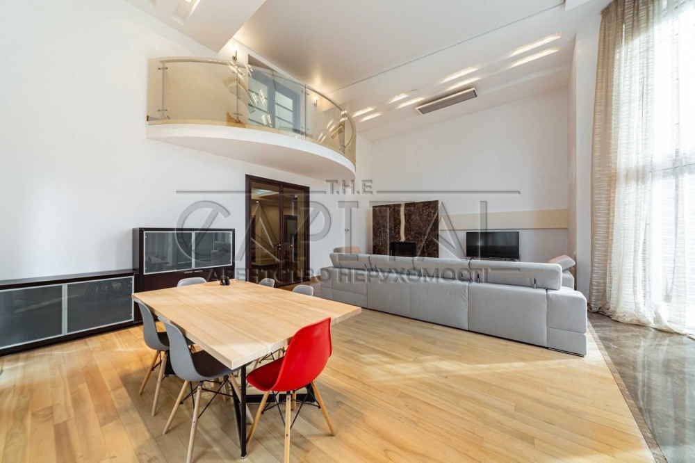1 рівень: простора вітальня з каміном (H = 6 м), кухня, тераса, кімната відпочинку з виходом у сад, гардероб, спортзал, сауна.