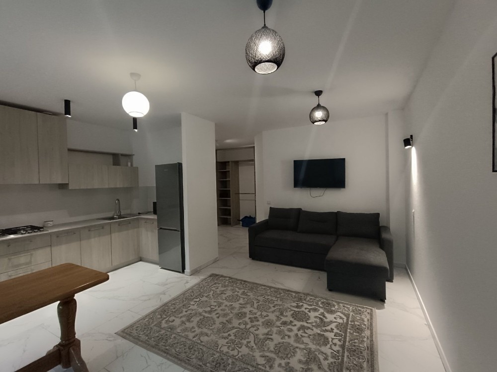 Оренда стильної 1 к кв з кухнею студією в новому будинку ЖК "Файна Таун" в Шевченківському районі, вул. Салютна, 2 Квартира 43 м2 , розташована на четвертому поверсі та складається з передпокою, спальні, великої кухні -студії та санвузла. Вікна квартири виходять в двір. Облаштована всіма необхідними меблями з екологічно чистої деревини та оснащена побутовою технікою: телевізор Samsung Smart 43, кондиціонери в кухні та кімнаті, плита індукційна, вбудований холодильник, духова шафа з функцією мікрохвильової печі, пральна машина з сушаркою. В кухні та ванній кімнаті тепла підлога, високошвидкісний інтернет. ЖК "Файна Таун" це: закрита територія з входом по картці, цілодобова охорона, відеоспостереження, паркінг, підземні контейнери для сміття, зарядні станції для електромобілів та лавки з інтегрованими батареями для підзарядки девайсів, розумне освітлення, яке підлаштовується під час доби та ще багато чого для того, щоб жити з комфортом й ні в чому себе не обмежувати) розповім при перегляді. Зручне транспортне сполучення та розвинута інфраструктура: магазини,спортивні та пішохідні зони ,зона барбекю, ресторани та кафе. Квартира, в якій поєднані комфорт та затишок, шукає своїх порядних орендарів молоду пару або одну людину без дітей та тварин. Перша оренда, квартира вільна.