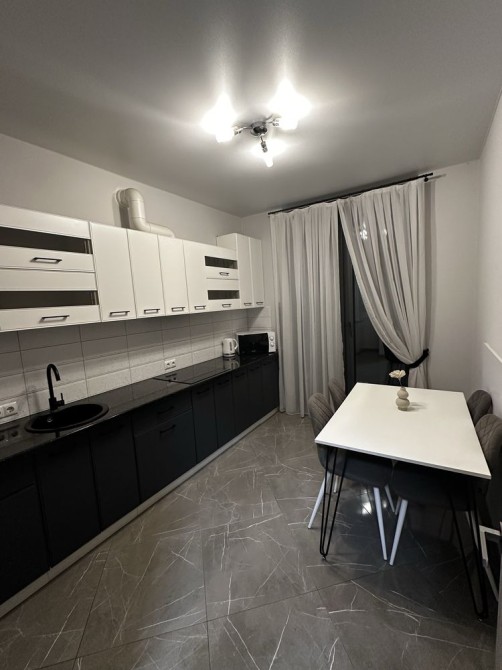 Повністю укомплектована технікою: телевізор, пральна машина, мікрохвильова, духова, холодильник, плита, пилосос, чайник.