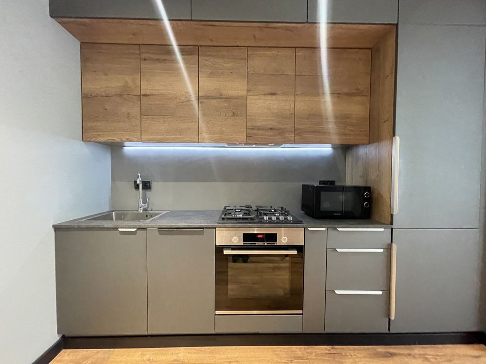 Оренда стильної 1 к кв з кухнею студією в новому будинку ЖК "Файна Таун" в Шевченківському районі, вул. Салютна, 2 Квартира 43 м2 , розташована на четвертому поверсі та складається з передпокою, спальні, великої кухні -студії та санвузла. Вікна квартири виходять в двір. Облаштована всіма необхідними меблями з екологічно чистої деревини та оснащена побутовою технікою: телевізор Samsung Smart 43, кондиціонери в кухні та кімнаті, плита індукційна, вбудований холодильник, духова шафа з функцією мікрохвильової печі, пральна машина з сушаркою. В кухні та ванній кімнаті тепла підлога, високошвидкісний інтернет. ЖК "Файна Таун" це: закрита територія з входом по картці, цілодобова охорона, відеоспостереження, паркінг, підземні контейнери для сміття, зарядні станції для електромобілів та лавки з інтегрованими батареями для підзарядки девайсів, розумне освітлення, яке підлаштовується під час доби та ще багато чого для того, щоб жити з комфортом й ні в чому себе не обмежувати) розповім при перегляді. Зручне транспортне сполучення та розвинута інфраструктура: магазини,спортивні та пішохідні зони ,зона барбекю, ресторани та кафе. Квартира, в якій поєднані комфорт та затишок, шукає своїх порядних орендарів молоду пару або одну людину без дітей та тварин. Перша оренда, квартира вільна.