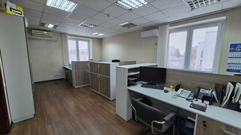 Офісний блок займає весь третій поверх. Кабінетна система, загальна площа - 172,5 кв.м. Якісний ремонт і меблі, кондиціонери в кожному кабінеті. Окремий просторий санвузол на поверсі.