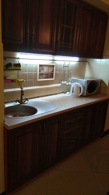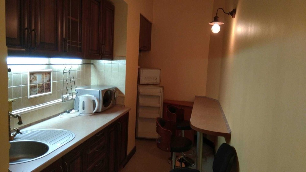 - облаштована кухня з холодильником та мікрохвильовкою