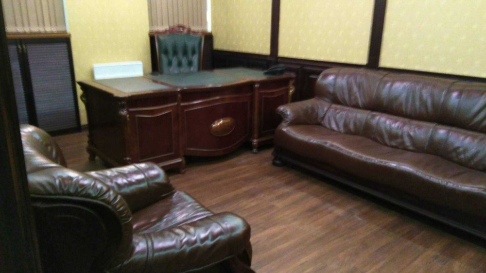 Офіс повнвстю оздоблений меблями небхідними для роботи - шафи для зберігання речей, гардероб, столи шкіряні дивани, кондиціонери.