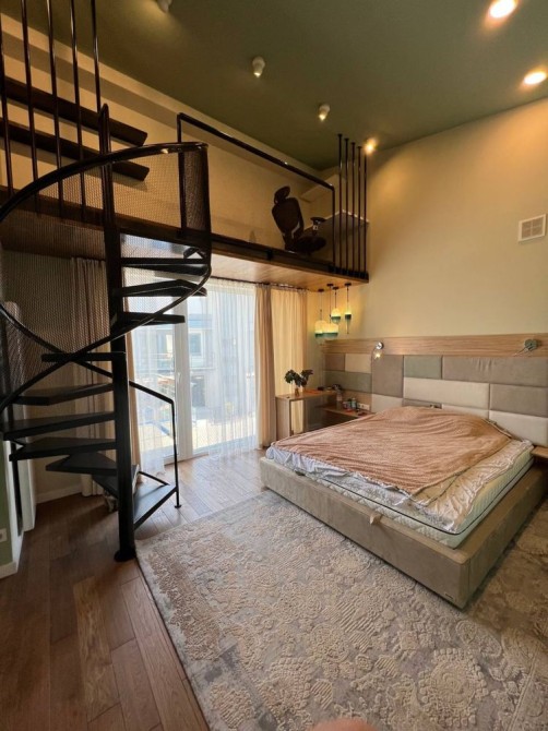 Планування: простора кухня-вітальня, господарська спальня, гостьова кімната та ще одна спальня, 2 санвузли з душем та ванною.